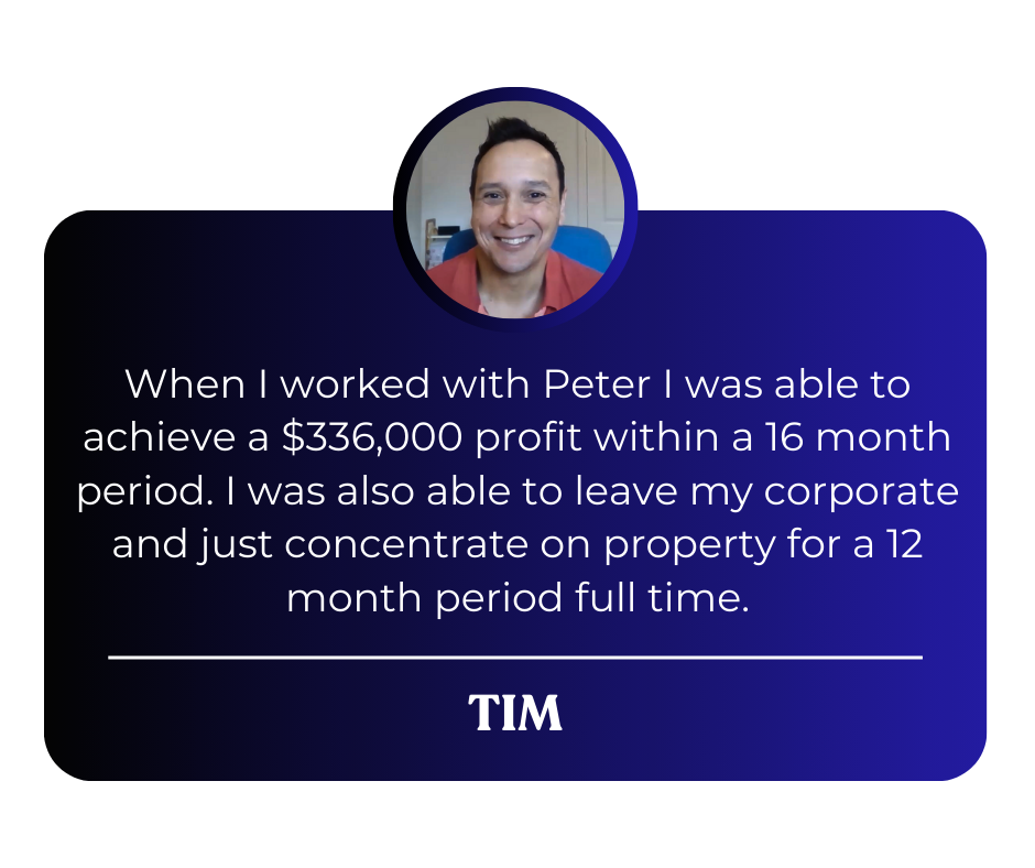 They've learned how to find deals that are suited for their exact financial position, they've learned how to uncover the good deals and identify which deals to avoid, how to understand the numbers of every deal, how to create "free blocks of land" and how to control and profit from property without needing to wait 10-30 years for capital growth like most investors do.